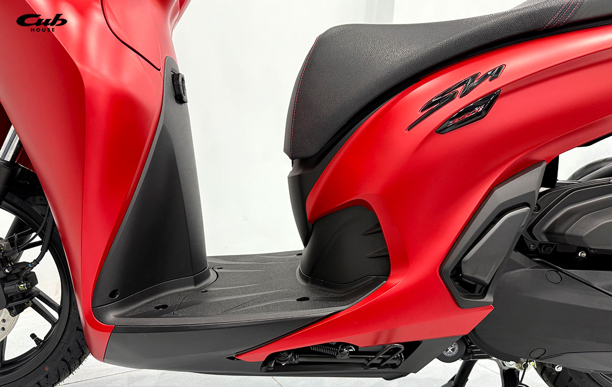 Sàn để chân phẳng – một đặc trưng không thể thiếu của dòng SH – mang lại sự thoải mái và tiện dụng trong quá trình di chuyển. SH350i 2025 nhập khẩu Ý cho thấy sự hài hòa giữa thẩm mỹ và tính thực tiễn trong từng chi tiết.