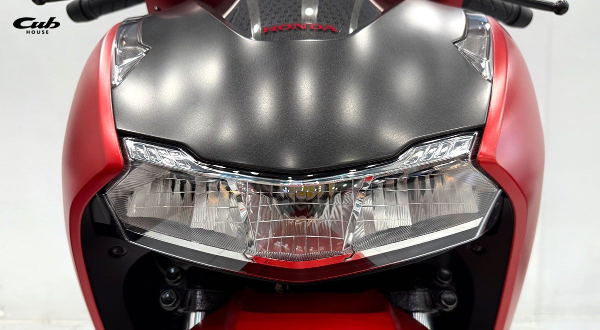 Điểm nhấn nổi bật nằm ở cụm đèn pha LED được hạ thấp xuống dưới mặt nạ trước, kết hợp cùng đèn xi-nhan và dải định vị ban ngày sắc sảo, tạo nên hiệu ứng chiếu sáng ấn tượng và đậm chất công nghệ. Phần mặt nạ cũng được thiết kế tinh tế với họa tiết chấm tròn độc đáo, vừa tăng tính nhận diện, vừa làm nổi bật vẻ hiện đại và cá tính của xe.